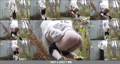 Our newest public pissing scene on Got2Pee features an ice blonde babe who walks around the side of a building looking for the perfect spot to pee. She stops and pulls down her skirt before crouching with her ass poking out, pissing all over the floor while trying to maintain balance
