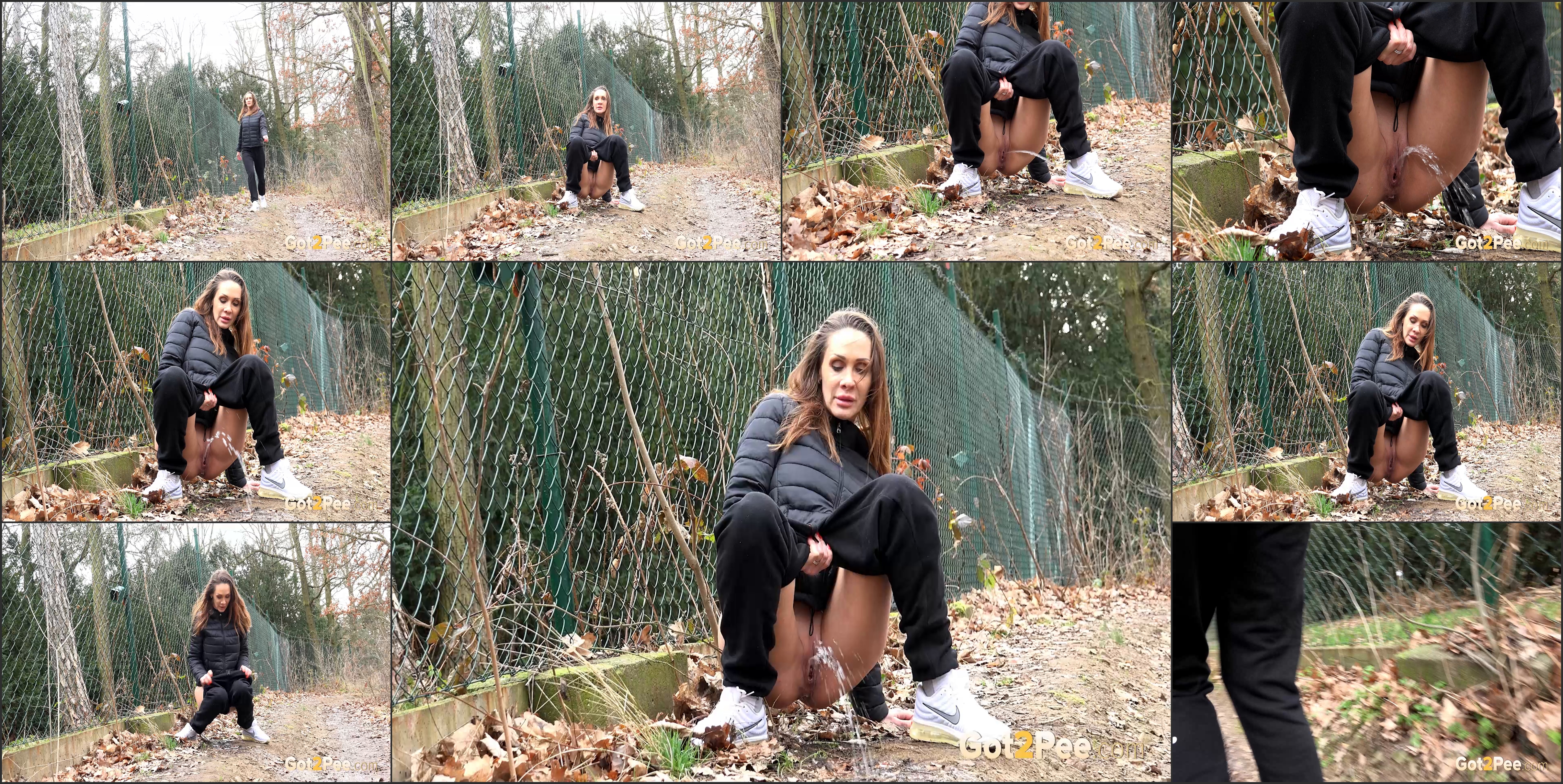 Hot MILF Cynthia Vellons returns to Got2Pee for our latest pissing porno and this hottie walks down a makeshift path by the edge of a wire fence. She really needs to relieve her piss desperation and although she knows this is quite a popular walking spot, this naughty babe pulls down her joggers and sprays her juices all over the ground