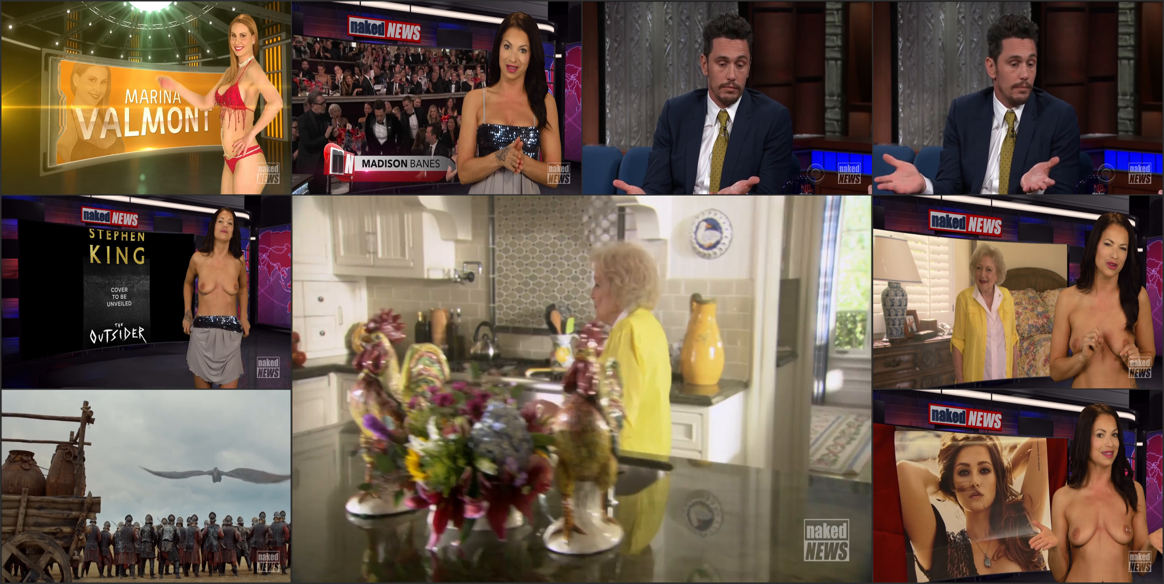 Hello, everyone, and welcome to Naked News I_m Eila Adams. Entertainment kicks things off today and ever since James Franco won a Golden Globe for his role in The Disaster Artist, things have been Disastrous for the Artist. Here_s Madison with the story. The instant his name was read Eila, he started taking heavy criticism online from women who thought it was wrong for him to be wearing a Time_s Up pin. Included among the critics was actress Ally Sheedy and another actress who said she felt pressured into doing a nude scene for him. Franco addressed the controversy during a recent appearance on The Late Show with Stephen Colbert. That was pretty hard to watch. On the one hand, I want to feel sorry for him. On the other, maybe he_ll think twice next time before trying to get a 17-year-old to meet him in a hotel It_s probably too early to be making my beach reading picks, but I_m still excited to know one option will be the new Stephen King novel His book _The Outsider_ is due out on May 22nd… which is good, because I_ll probably need every day of summer to get through the 576 PAGES I don_t want to give too much away, so I_ll just say it looks to be a crime story and the official plot synopsis includes the phrase violated corpse. Moving on… Someone NOT a corpse as of now is Betty White The possibly immortal actress will be turning NINETY-SIX on Wednesday, and she was recently asked by Parade Magazine what the secret was to her happiness and longevity. Her more poignant answer was Enjoy life. Accentuate the positive, not the negative. Then she noted that she also loves vodka and hot dogs, quote, probably not in that order. Oh, Betty, I hope when I_m your age, I_m still going strong… though maybe OUT of showbiz Brad Pitt doesn_t seem like someone who_d need to pay people to hang out with him… but the actor nearly spent 120 THOUSAND DOLLARS to get a couple to watch Game of Thrones with him Now, to be fair, it was for charity. And to be even fairer, he was bidding to have Emilia Clarke and Kit Harington watch it with him Because if you_re going to HBO and Chill with strangers, you want them to be the Mother of Dragons and the King of the North Unfortunately, Pitt was outbid… but not in my imagination And finally, according to the Wall Street Journal, now_s the time to start hoarding Playboys, because the print edition may be ending soon. Playboy Enterprises_ chief executive reportedly wants to shift the firm_s emphasis away from publishing and focus more on branding and licensing. Not coincidentally, it also looks like Hugh Hefner_s heirs will be unloading their remaining stake in the company to majority shareholder Ritzi Traverse. No word on exactly when the magazine will close shop, but I_m sure we_ll know by Bruce Colero_s yelling I_m Madison Banes, and that_s Entertainment