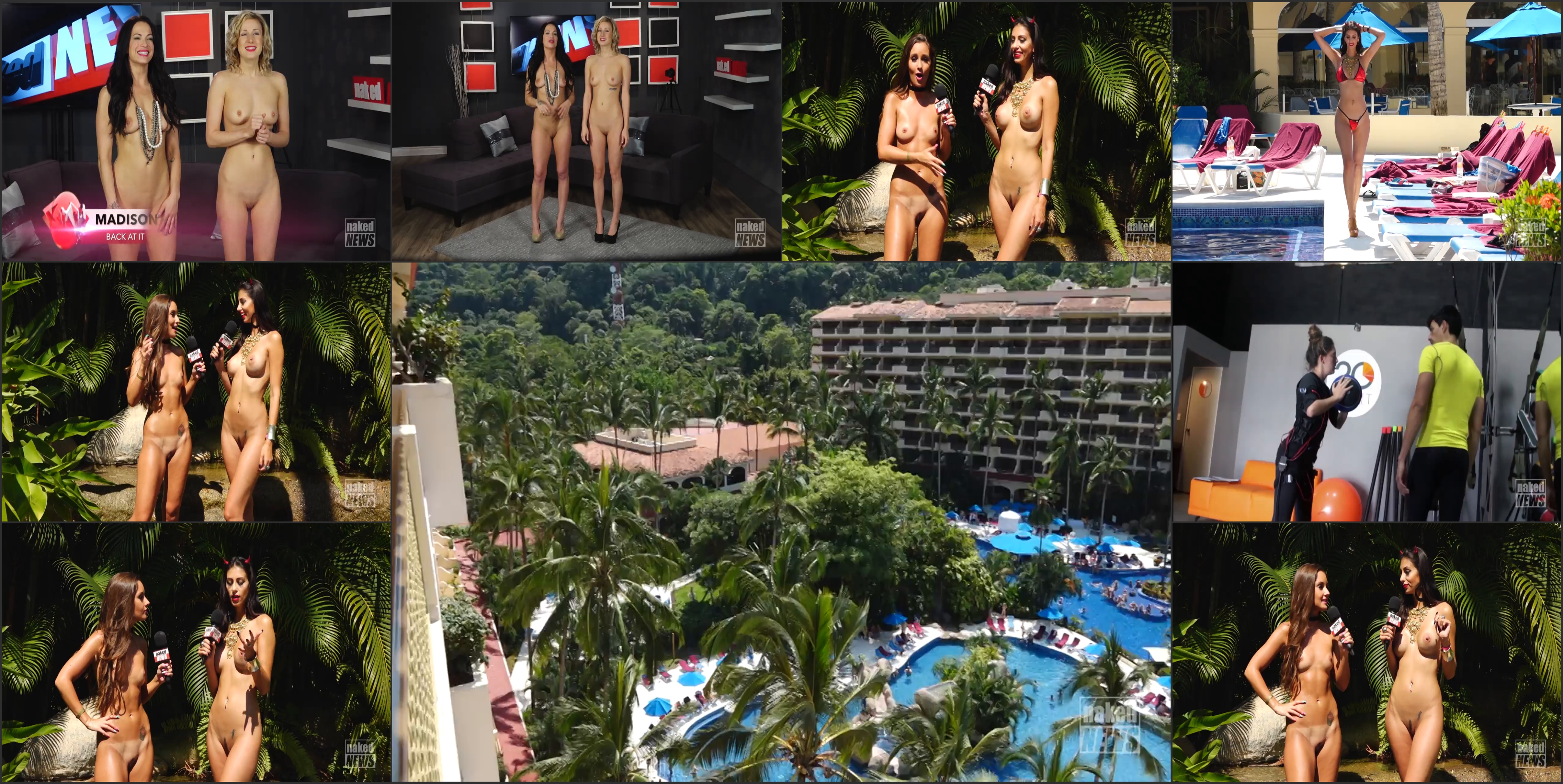 Welcome everyone to Naked News Magazine I_m Shannon Blake.And I_m Madison Banes… getting things going seems to be a little more difficult in the cold weather, am I right? It is WAY too cold these days, I am DREAMING of a getaway… where would YOU go? Well, to all of you struggling to stay warm, we have a special treat We_re going to warm things up in Puerto Vallarta with Kylie Morgan and gorgeous Mexican model Farina Chaparro. Here they are in the SCHMOOZE